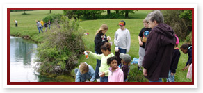 Our sponsored schools come for science or nature days of retreat. During such programs, groups will conduct hikes on our trails or in the woods, collecting a wide variety of nature artifacts or observing nature. They will sometimes gather around the lakes to learn what they can from the variety of biology that exists in our spring-fed lakes.
